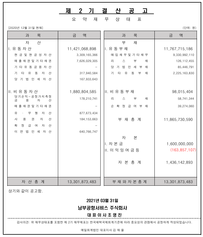 제2기 2020 결산공고(2021.03.31.)