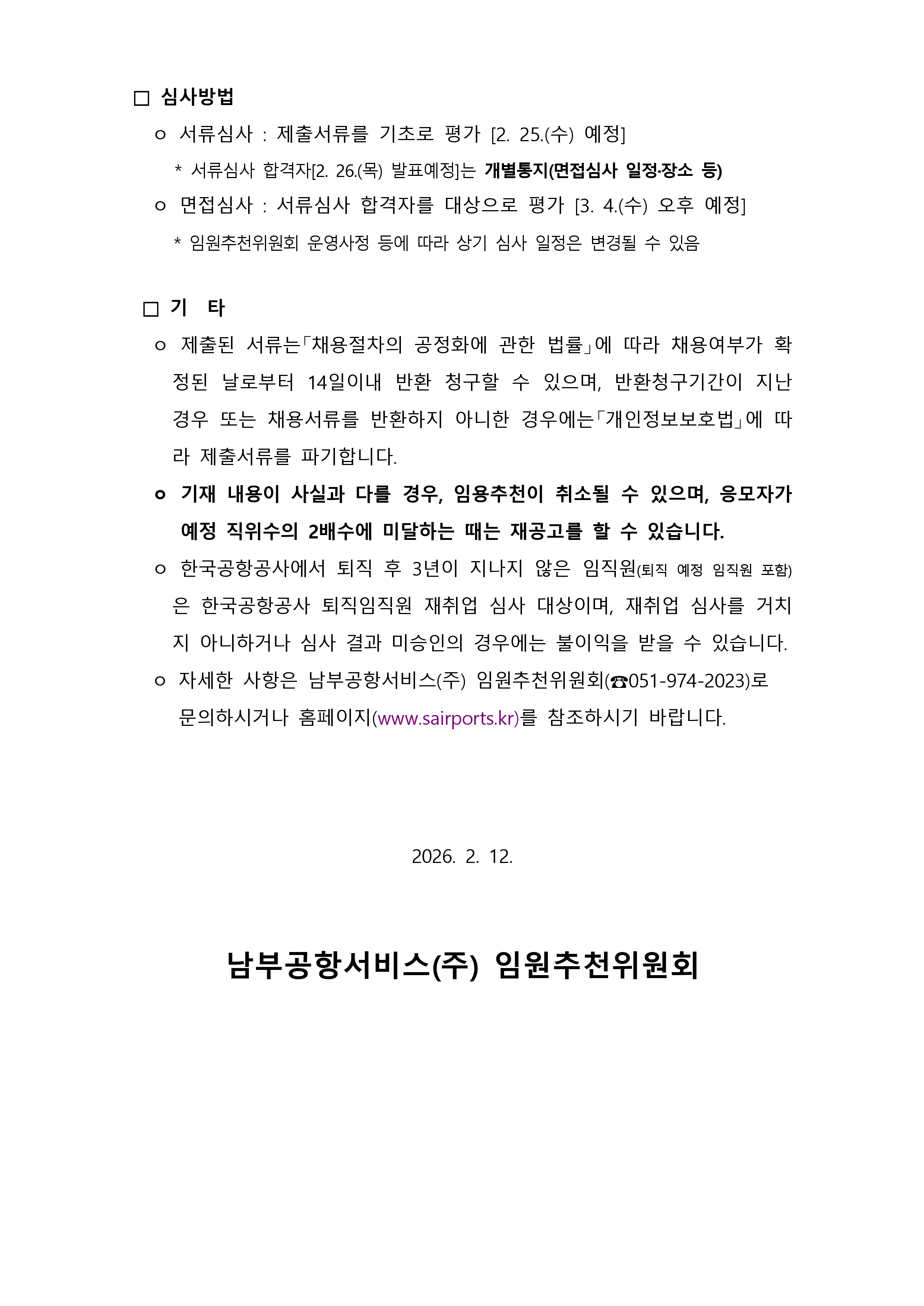 남부공항서비스(주) 2026년 임원 초빙 공고